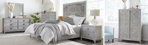 - Wood surfaces are lightly wire brushed to accentuate the wood's natural grain