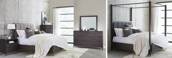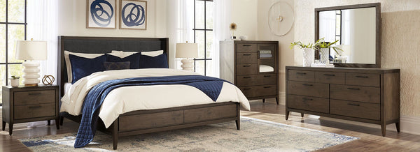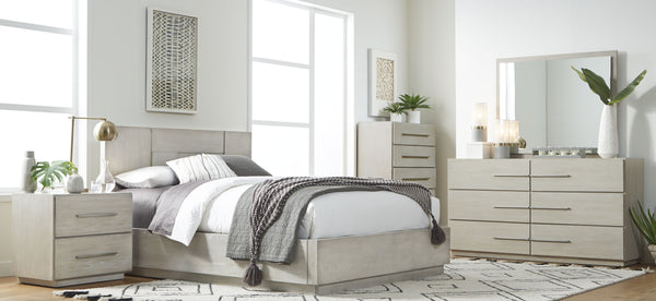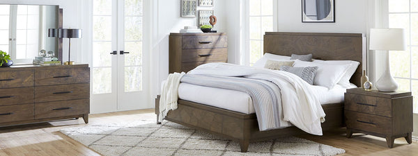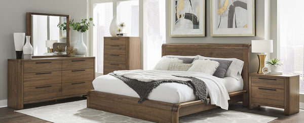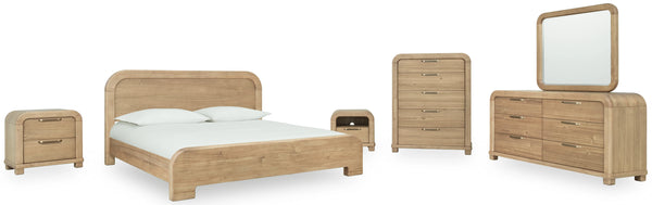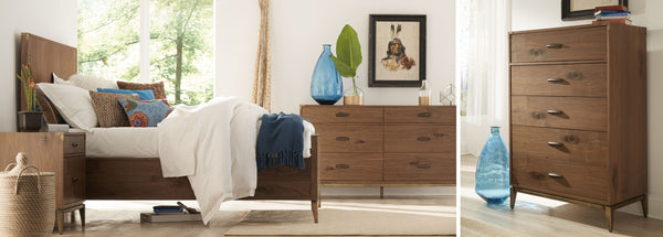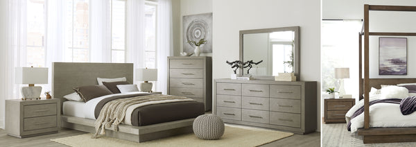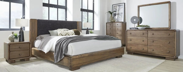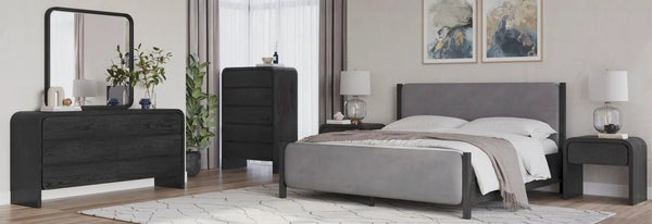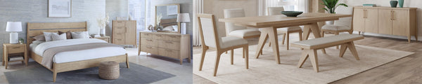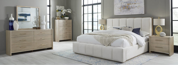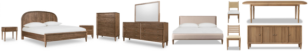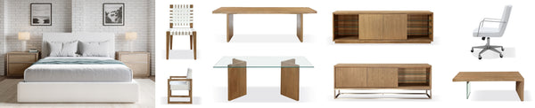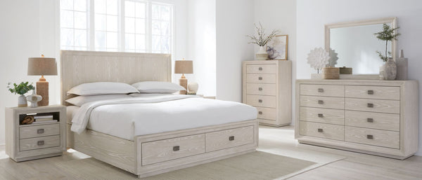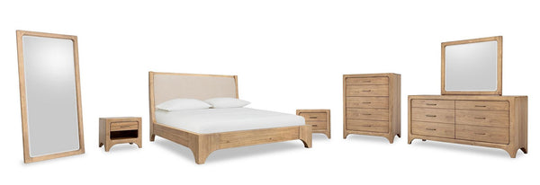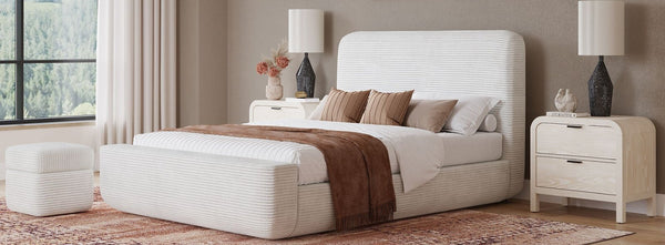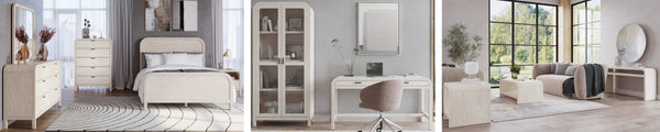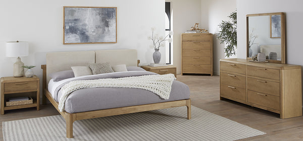 The Penny collection’s gentle curves and understated elegance embody the Quiet Luxury ethos, where every detail whispers sophistication. Crafted from mixed quartered and flat cut Ash wood veneer, its pale natural tones and subtle grain epitomize understated beauty. A luxurious curved linen headboard and spherical burnished brass knobs offer a graceful contrast that blend seamlessly into the confident minimalist aesthetic.